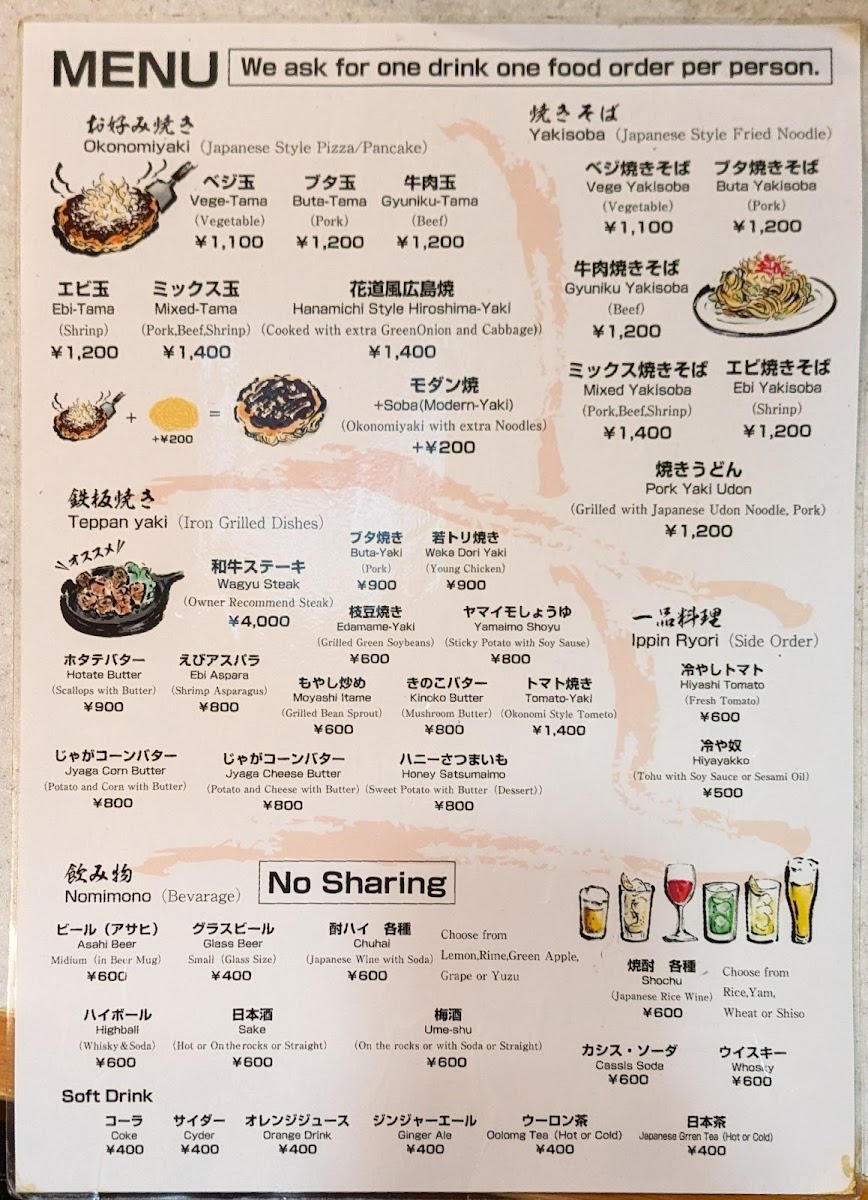 Hanamichi offers a straightforward menu focused on comforting, home-style okonomiyaki and teppanyaki dishes. The selection invites diners to enjoy simple, satisfying meals often centered around fresh, savory ingredients prepared right before you. This approachable menu includes highlights like succulent rump steak, pork yaki udon crafted with thick Japanese noodles, and cheesy potatoes—perfect for sharing or savoring slowly over good conversation.